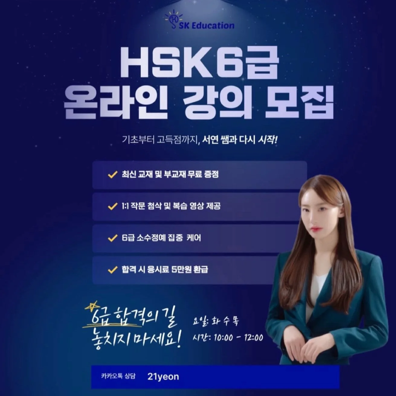 4월 7일 서연 쌤 HSK6급 수업이 오픈합니다.